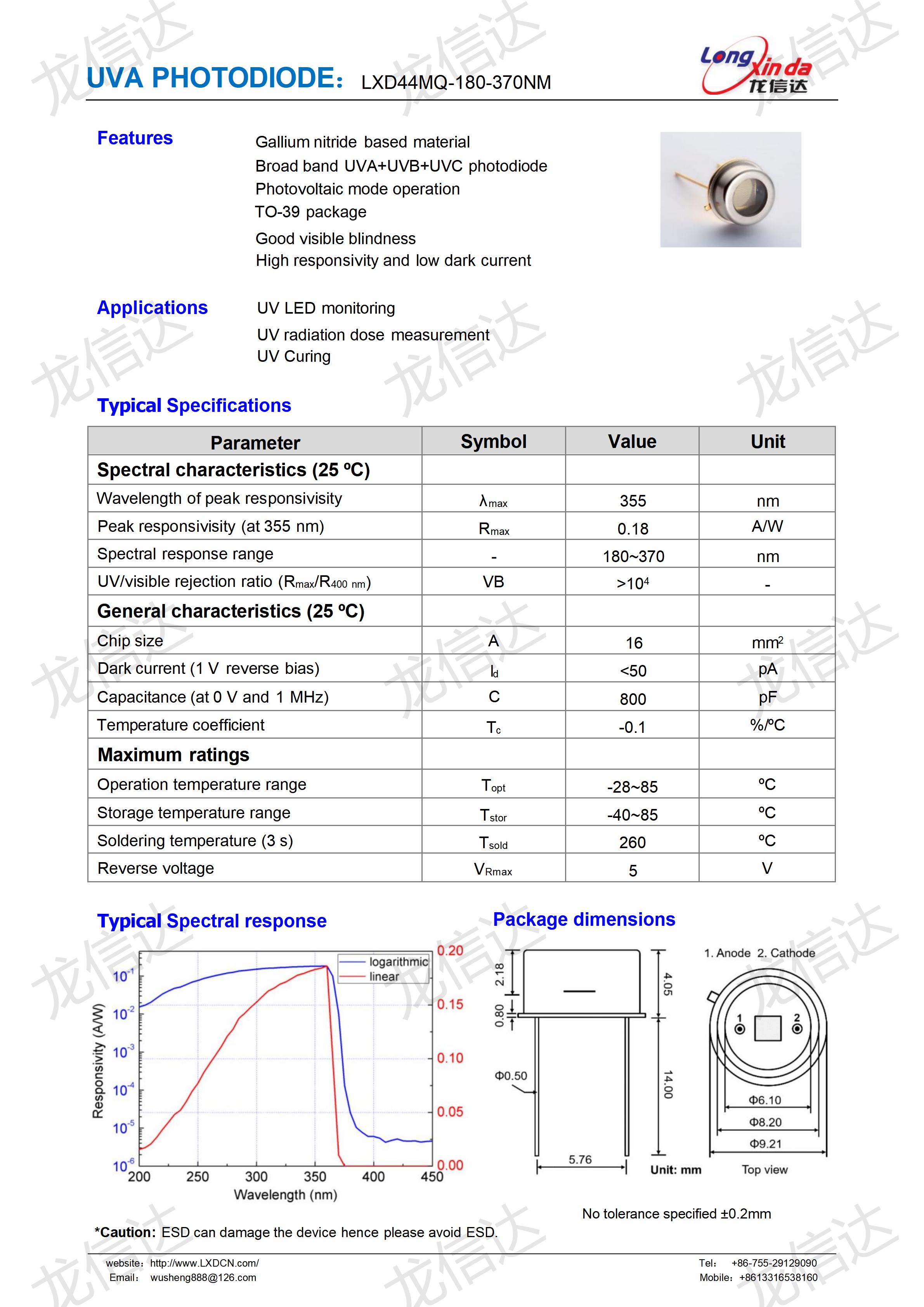 TO-39封装氮化镓类UV光电管180-370nm系列
